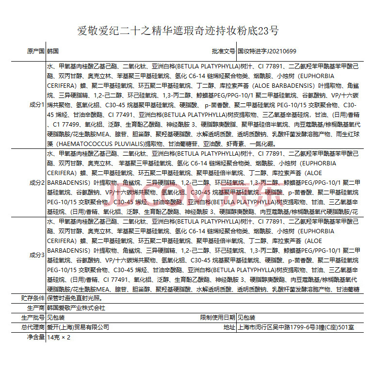 商品相册:Aekyung Age20's爱敬三色星空黑气垫bb霜遮瑕持妆防晒粉底混油23#14g*2送女友礼物第