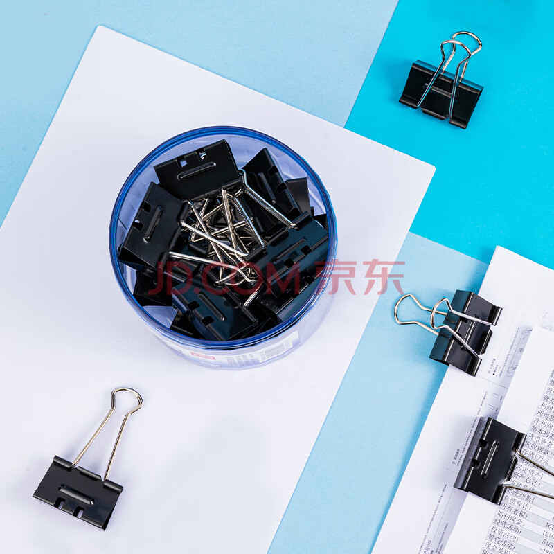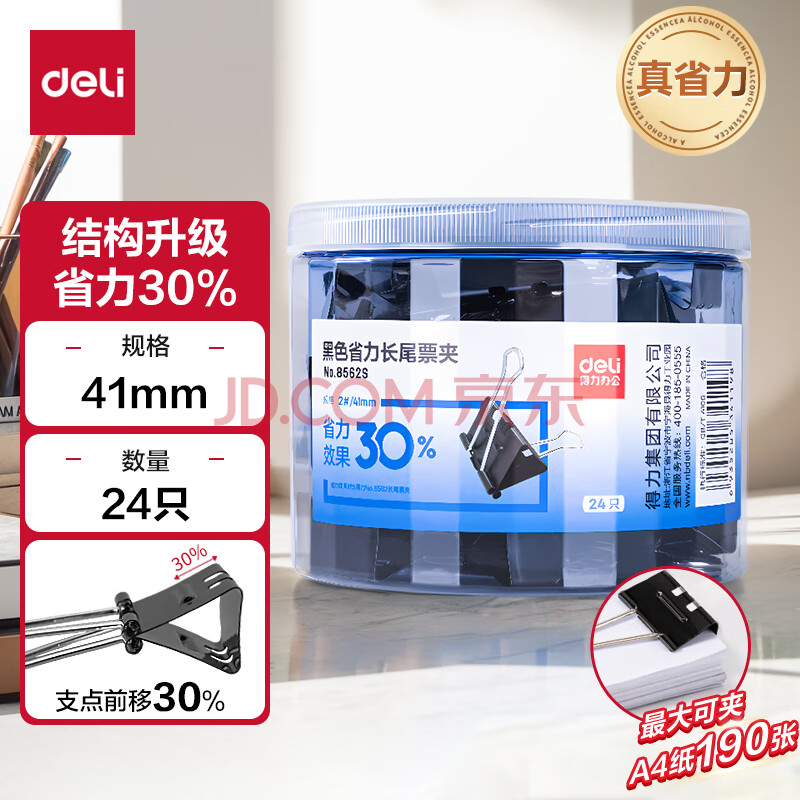 商品相册:得力(deli)24只41mm省力黑色长尾夹票夹 2号中号金属燕尾夹票据文件夹子 办公用品 24只/筒 大号8562S第