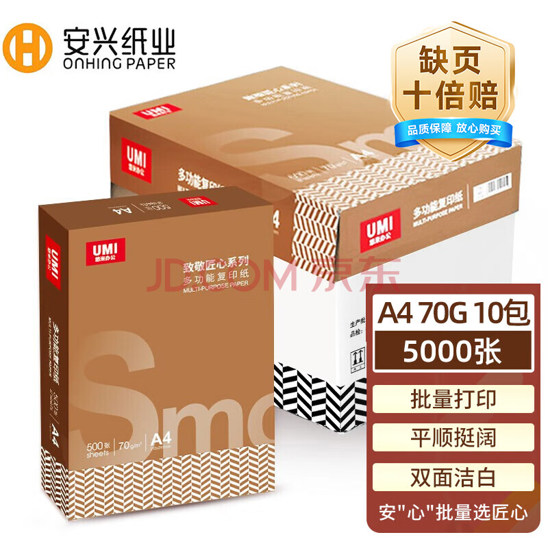商品相册:安兴匠心 A4打印纸复印纸批发70G一箱多功能办公用品a4纸高性价比整箱 500张/包 10包/箱(5000张)第