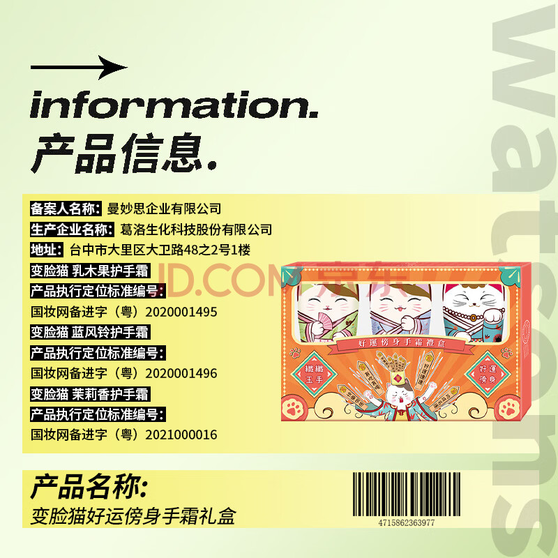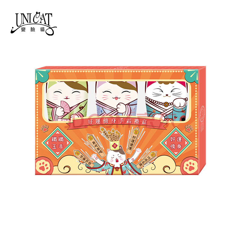 商品相册:变脸猫(UNICAT)好运傍身护手霜礼盒40ml*3(蓝风铃+乳木果+茉莉)第