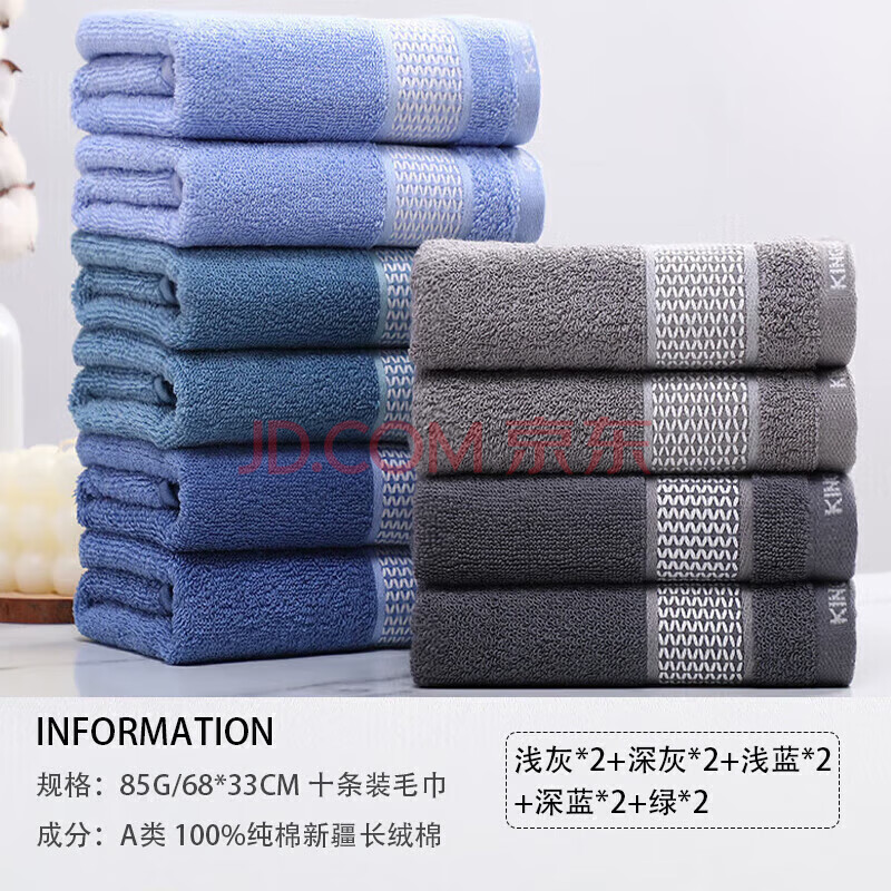 商品相册:金号纯棉毛巾 A类全棉吸水洗澡洗脸毛巾 素色洁面巾10条68*33cm第