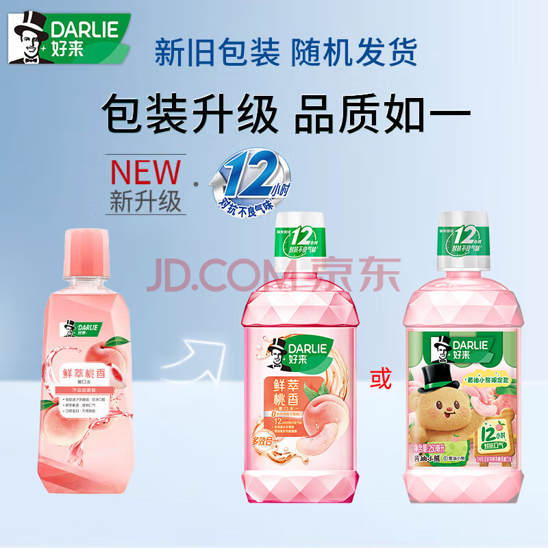 商品相册:好来(DARLIE) (原黑人)桃香果味清新漱口水250ml联名黄油小熊洁净温和新旧随机第