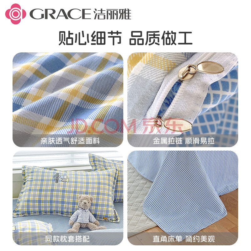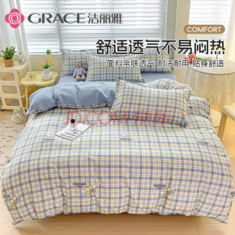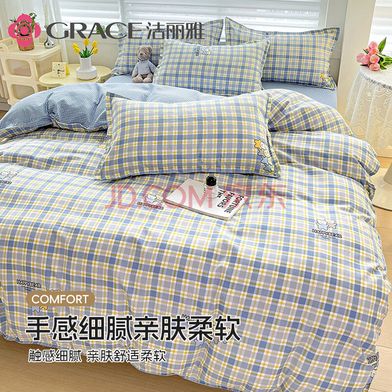 商品相册:洁丽雅磨毛四件套 7A抗菌加厚套件床单款双人床上套件 好朋友 被套200*230cm第