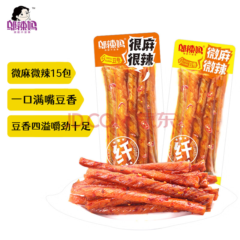 商品相册:邬辣妈杂粮豆卷 微麻微辣 湖南特产手撕休闲零食豆制品辣条 20g*15包第