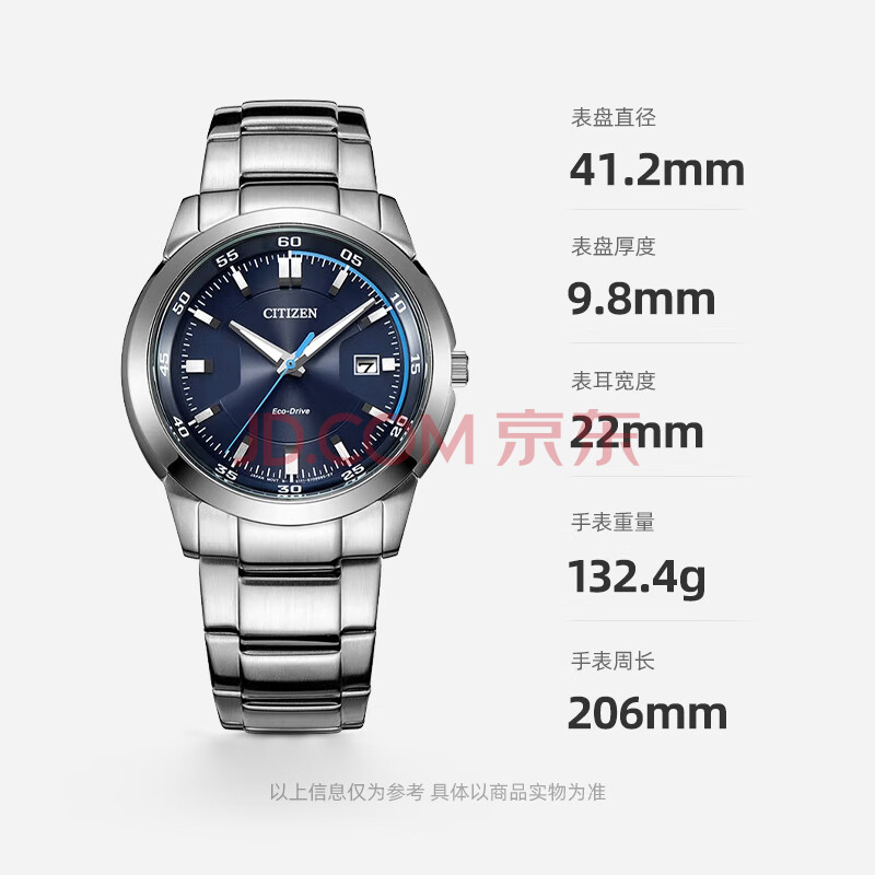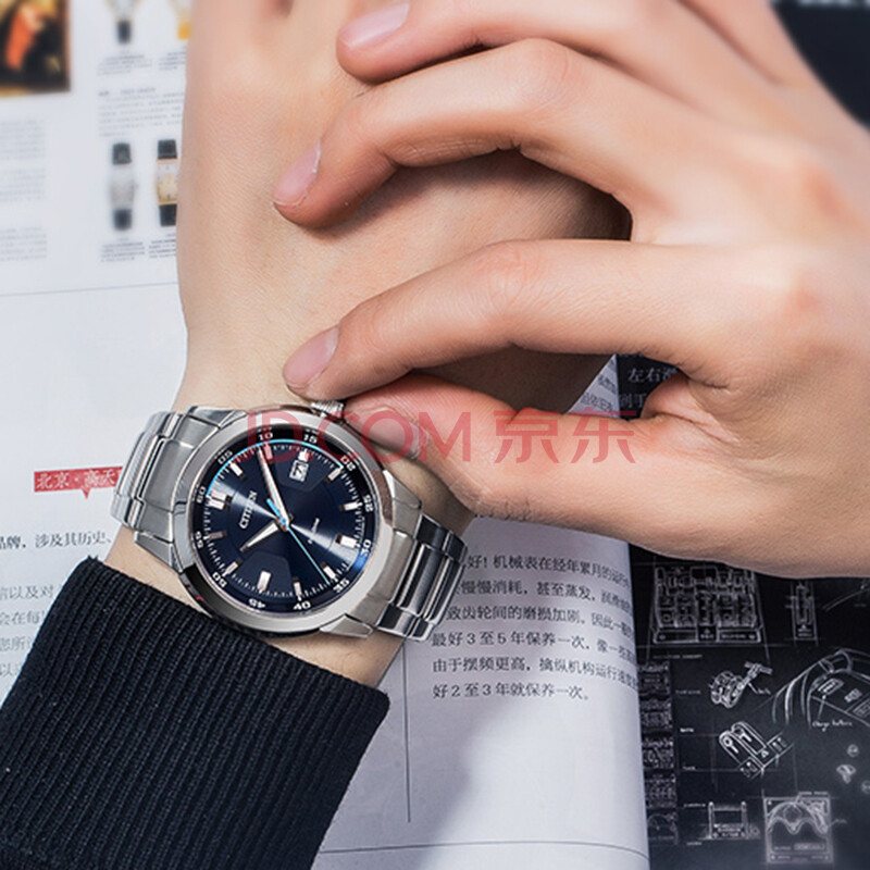 商品相册:西铁城(CITIZEN)手表男日韩表光动能蓝盘日显钢带时尚商务送男友礼物BM7140-54L第