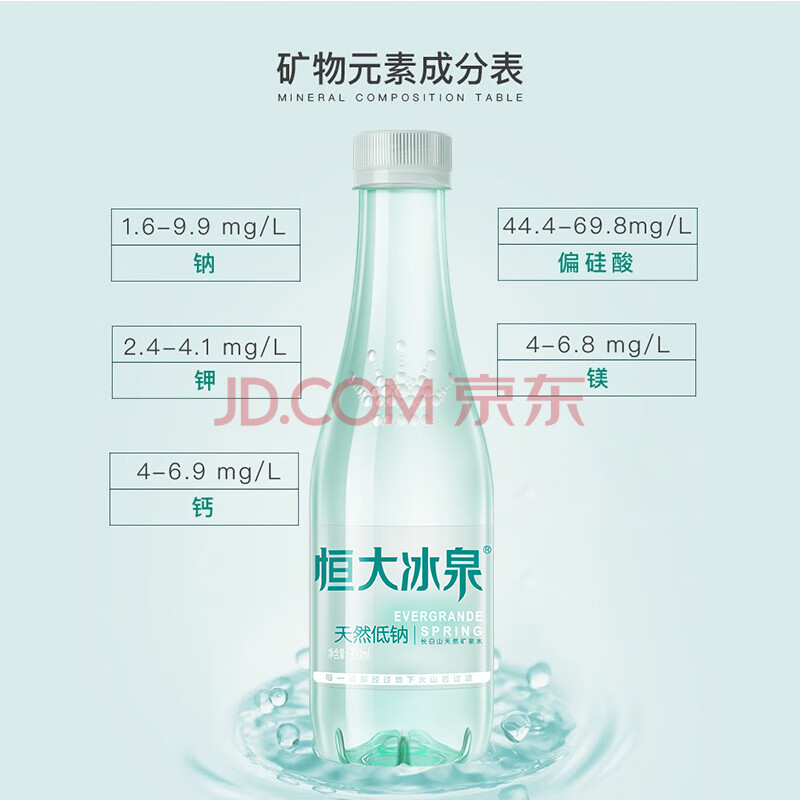 商品相册:恒大冰泉 长白山饮用低钠矿泉水会议办公用水350ml*24瓶整箱装热门商品第