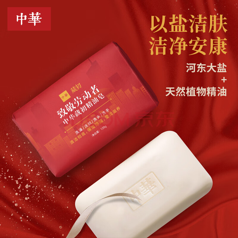 商品相册:中华香皂劳动者沐浴皂120g*3 天然精油99.9%除菌 洗发洗脸皂 男士香皂第