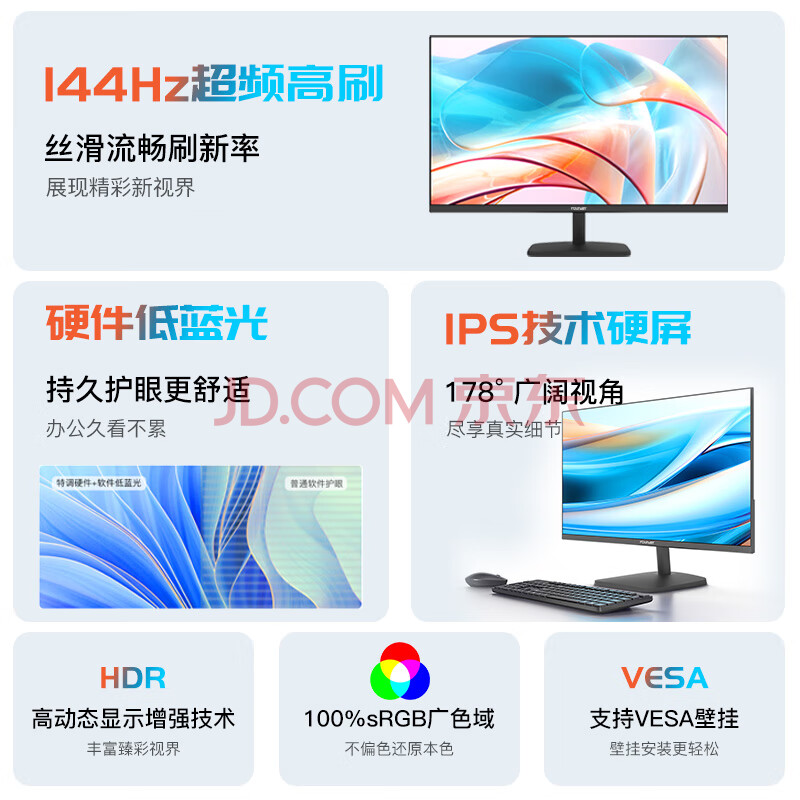 商品相册:方正(Founder)23.8英寸显示器 IPS技术硬屏 120Hz超频144Hz 硬件低蓝光 窄边框可壁挂办公电脑屏幕 FC300节能版第