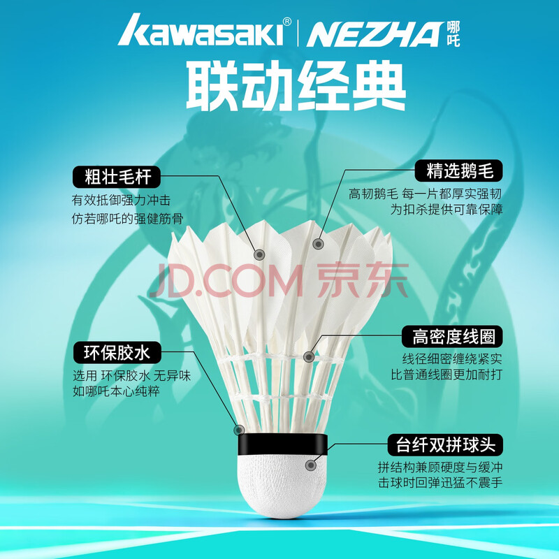 商品相册:川崎羽毛球比赛训练耐打鹅毛球12个装哪吒9号球第