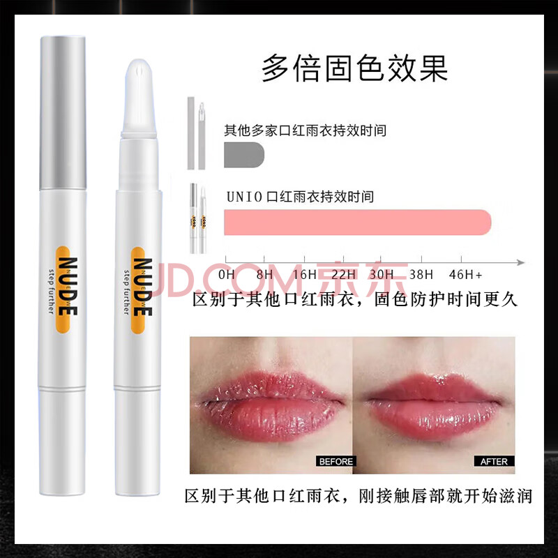 商品相册:UNIO口红雨衣不脱色掉色啫喱凝胶防水防汗定妆固色保湿滋润口红唇膏4g第