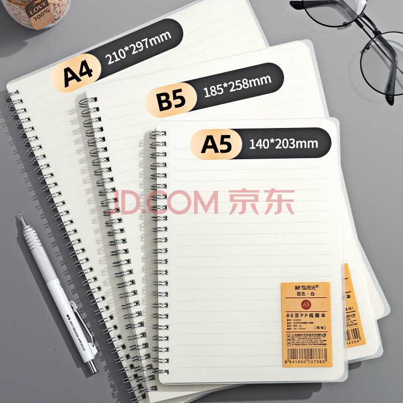 商品相册:晨光(M&G)文具B5/80张 笔记本本子大软抄活页线圈记事本学生记录作业英语本学习用品横线1本XB5821开学必备第