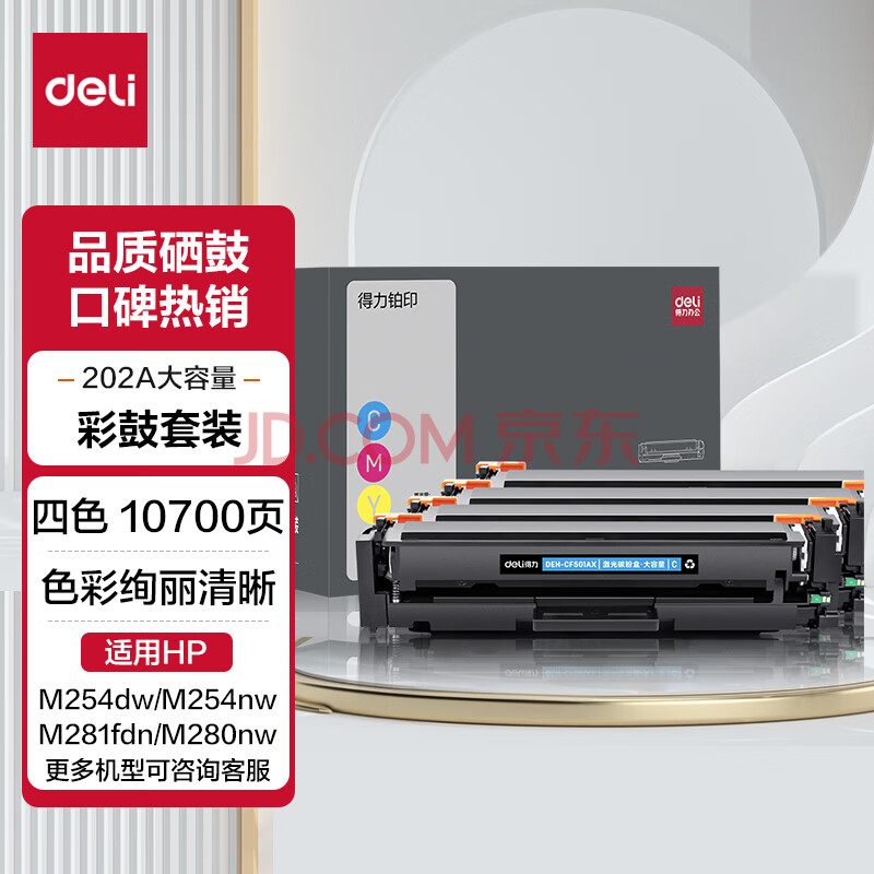 商品相册:得力(deli)202a硒鼓 CF500A硒鼓适用惠普M281FDW硒鼓 M254DW M254NW M281FDN M280NW cf500a带芯片大容量四色硒鼓套装第