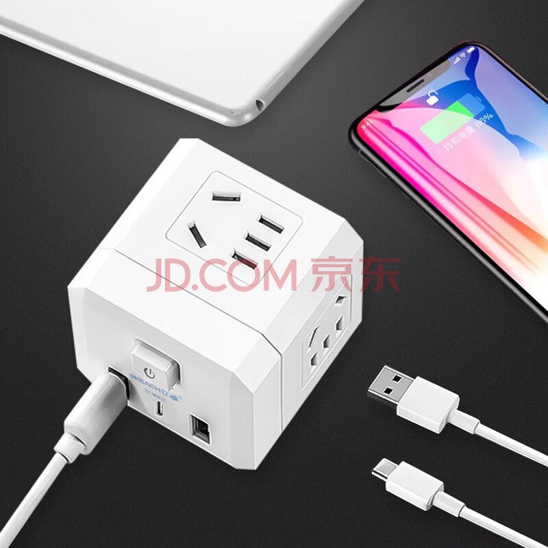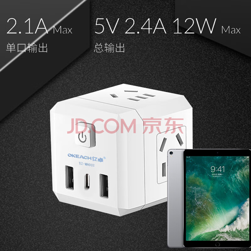 商品相册:亿卓(OKEACH)魔方USB插座插排插线板排插开关插座转换插头魔方插座YZ-M801U白色第