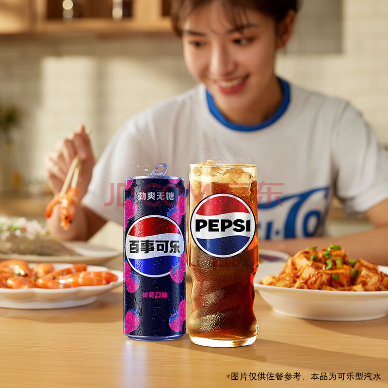 商品相册:百事可乐Pepsi 无糖可乐 树莓味碳酸饮料汽水 330ml*12听 细长罐整箱装第
