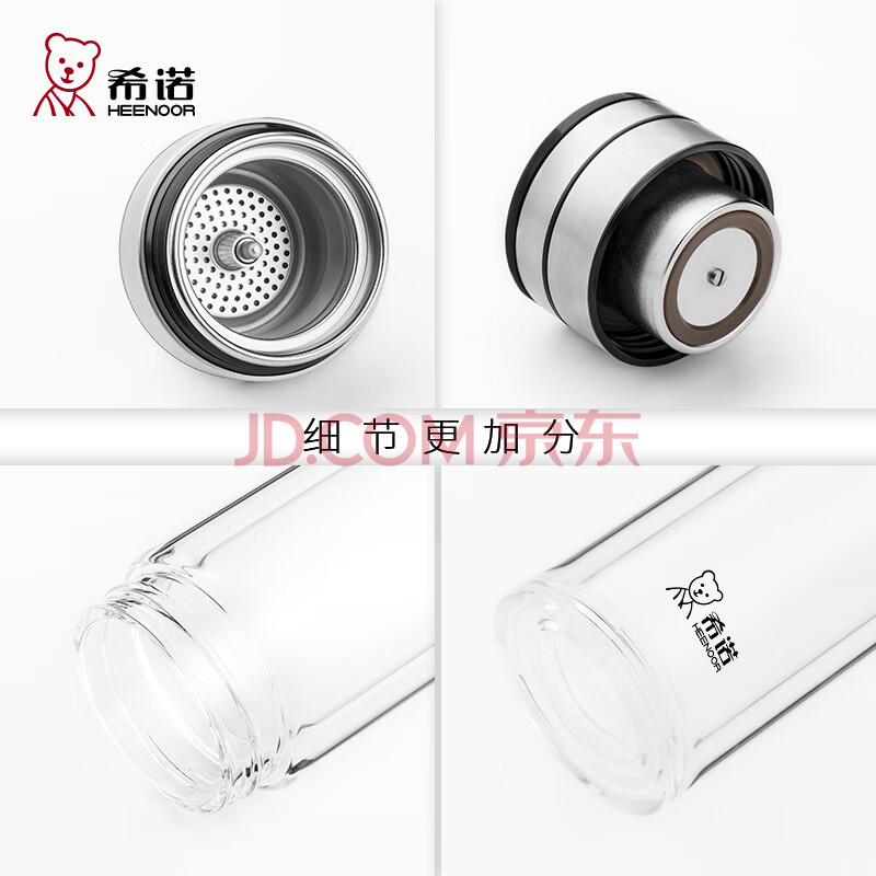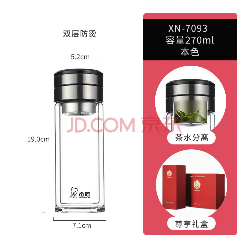商品相册:希诺双层玻璃杯男茶水分离杯高档泡茶杯子车载水杯XN-7093本色 270mL第