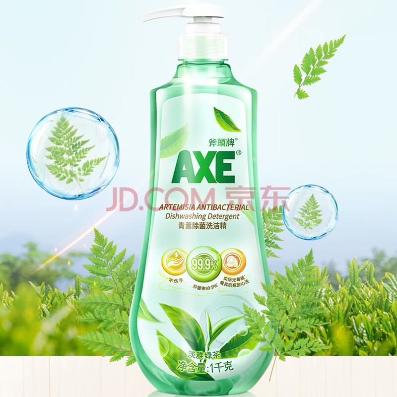 商品相册:AXE斧头牌青蒿除菌洗洁精1kg泵装 淡雅绿茶 天然精华除菌99.9%第