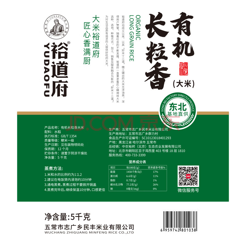 商品相册:裕道府有机 长粒香 10斤装 当季新米 东北大米 粳米 5kg 有机 食品第
