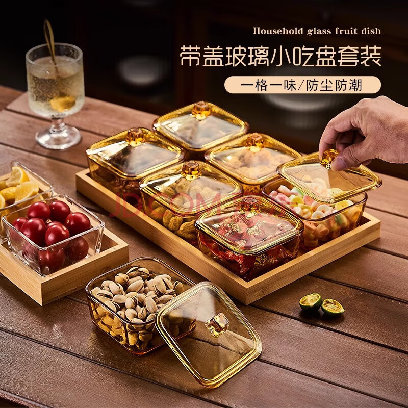 商品相册:青苹果水果盘分格干果盘家用糖果零食点心果盘四格节日礼盒装第