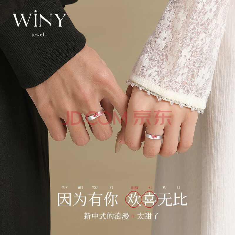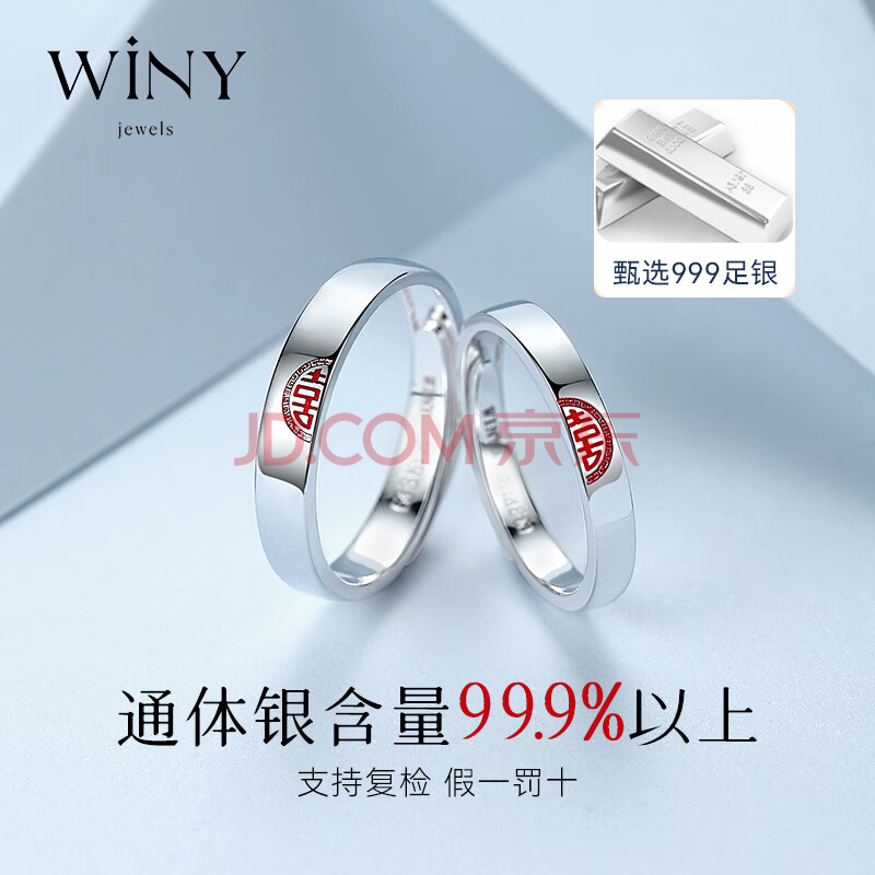 商品相册:唯一(Winy)999纯银戒指情侣一对女士情侣对戒男士求婚戒指生日礼物送女生第