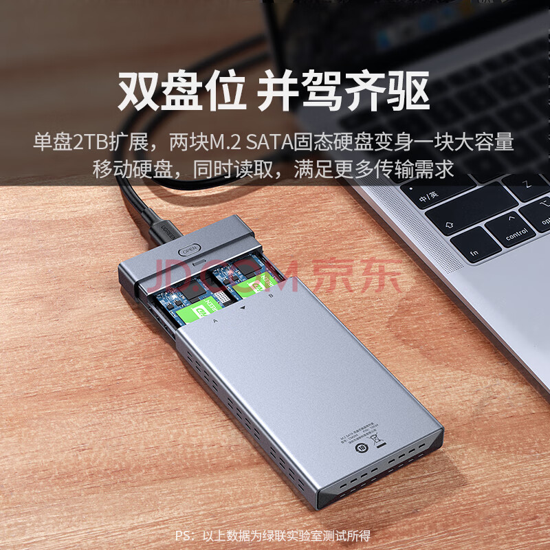 商品相册:绿联 M.2磁盘阵列硬盘盒 双盘多盘位硬盘笼(带RAID存储)外置硬盘仓 适用SATA串口机械固态移动硬盘第