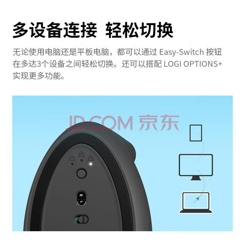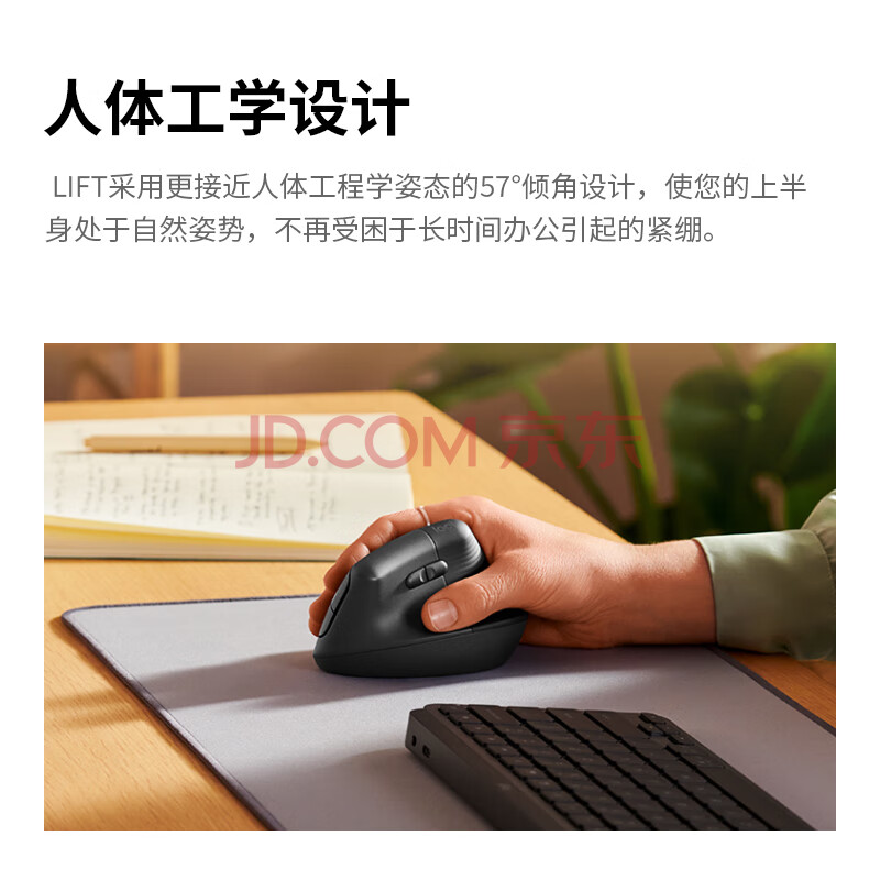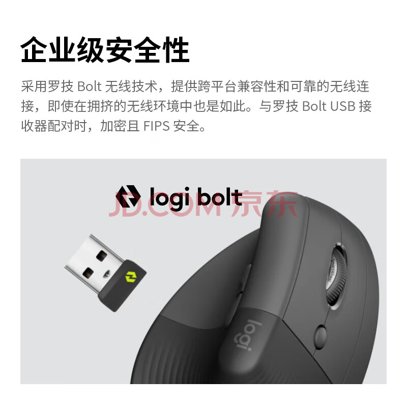 商品相册:罗技(Logitech)Lift人体工学蓝牙鼠标 无线静音垂直办公鼠标 带Logi Bolt接收器 商用版 灰色第