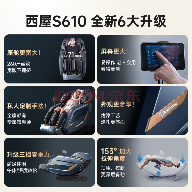 商品相册:西屋【CE认证】S610按摩椅太空舱家用全身智能按摩全自动电动沙发限时补贴送父母生日礼物 诺曼底灰第