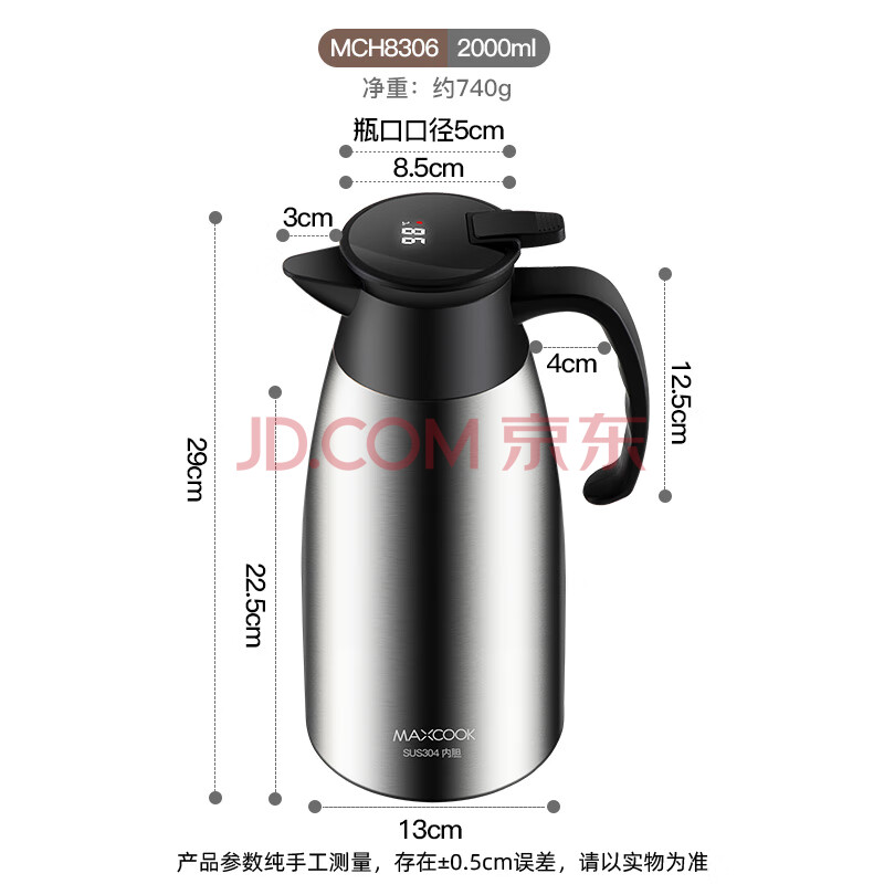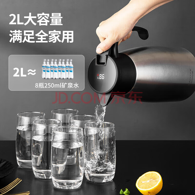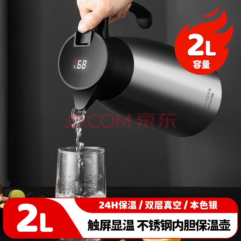 商品相册:美厨(MAXCOOK)保温壶 智能显温暖水壶家居用304不锈钢真空热开水瓶2L MCH8306第