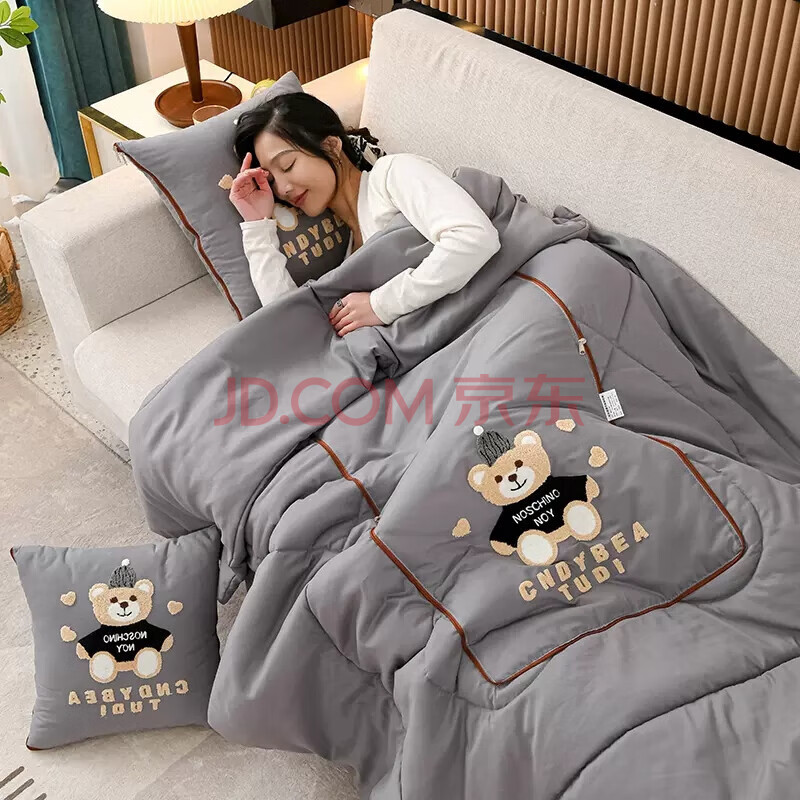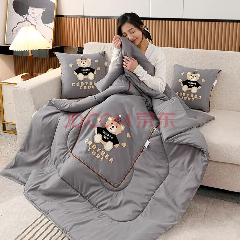 商品相册:艾薇 抱枕被子两用汽车办公室午睡枕午休毯子二合一沙发抱枕 灰帽子熊第