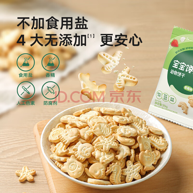 商品相册:宝宝馋了婴幼儿动物饼干草莓味婴儿宝宝零食强化钙铁锌20g第