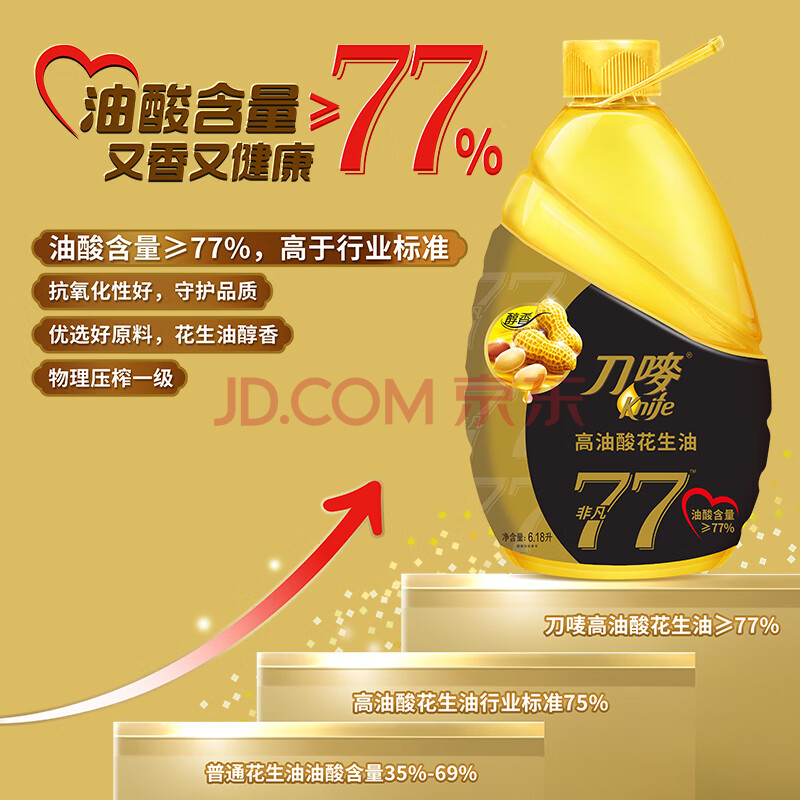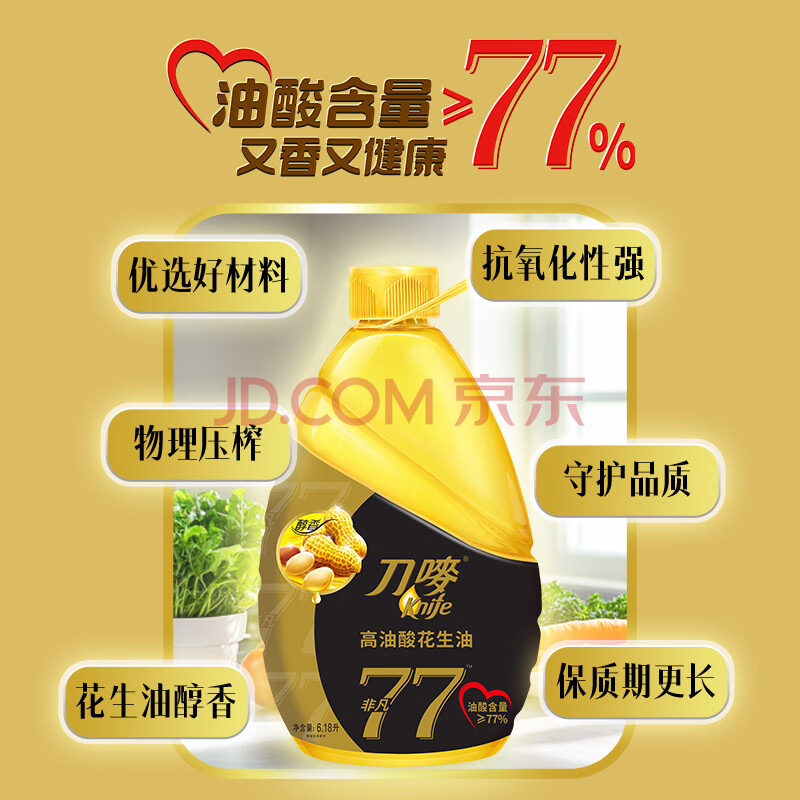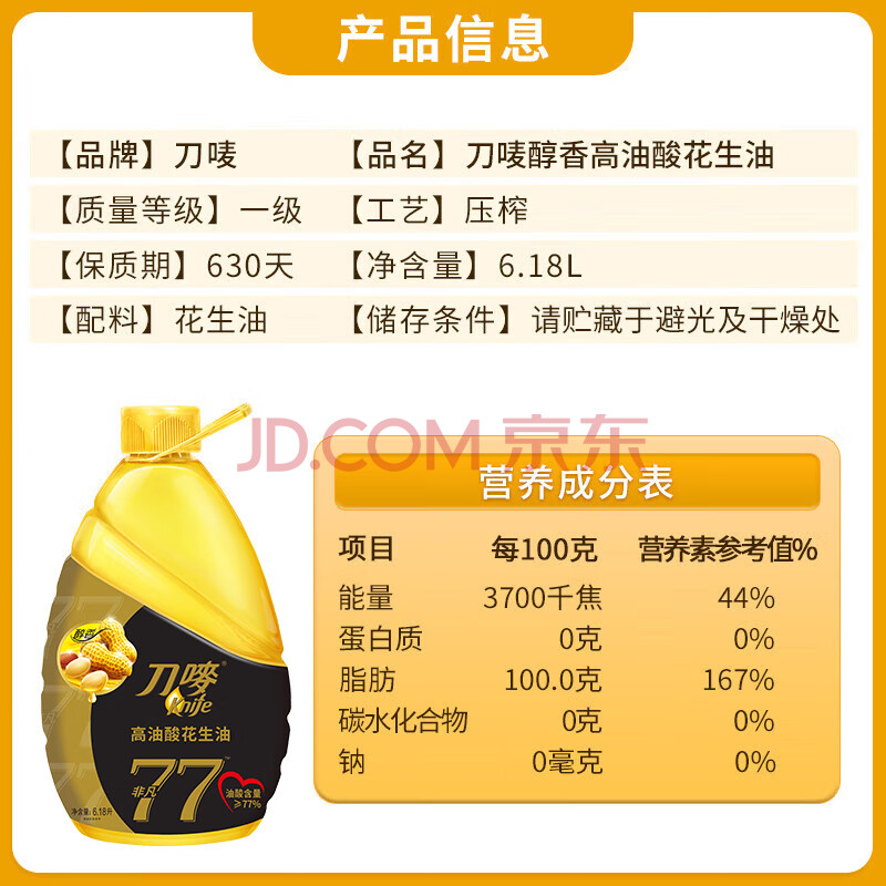 商品相册:刀唛(Knife)【保真花生油】高油酸花生油6.18L 物理压榨一级精炼食用油第1张/共7