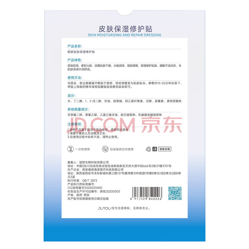 商品相册:绽妍面膜补水保湿修护皮肤修复面膜4盒共20片玻尿酸舒缓送女友礼物第