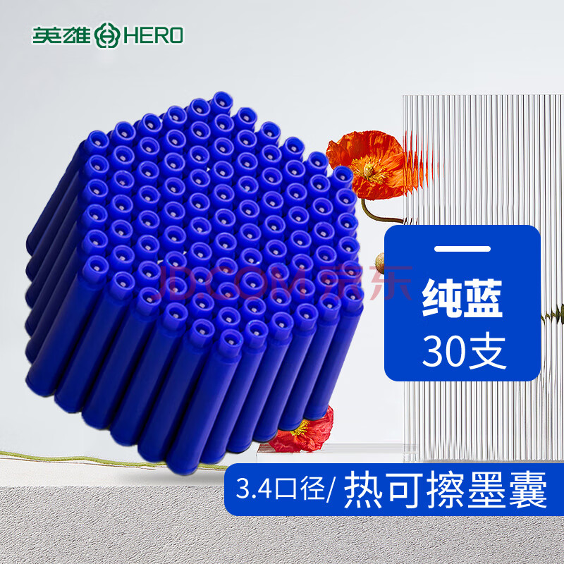 商品相册:英雄(HERO) 热可擦墨囊 2103RA小学三年级练字可替换热敏摩易擦 3.4mm口径 30支装 蓝色第