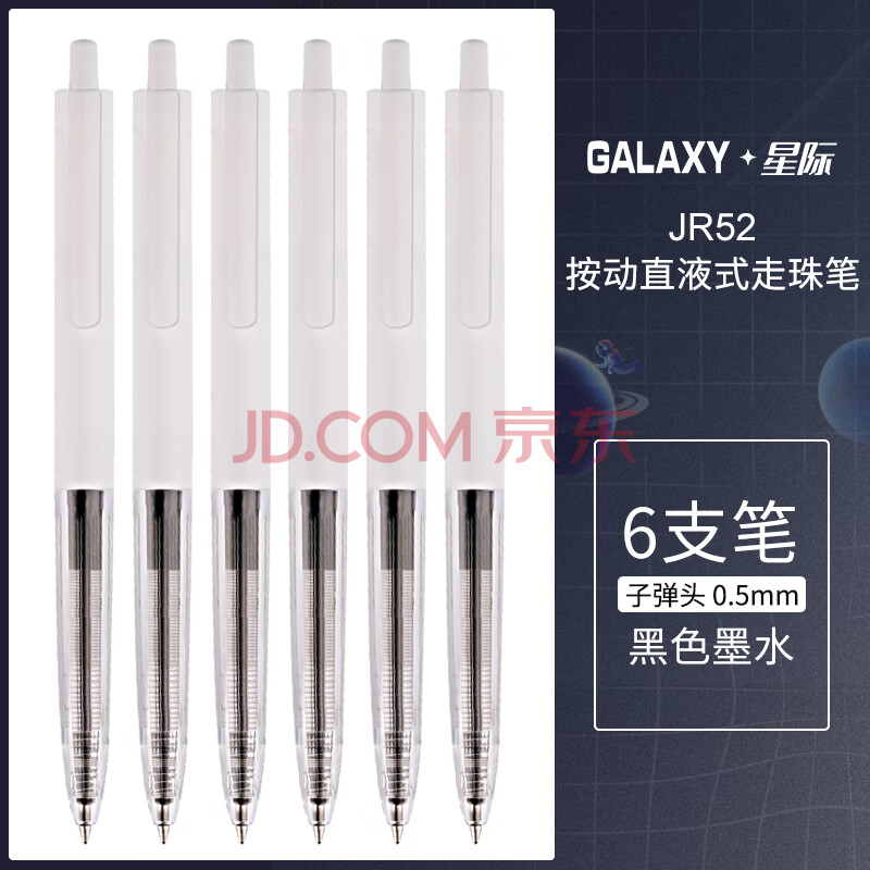 商品相册:白雪(snowhite)按动中性笔0.5mm直液式走珠笔速干 学生考试签字笔 星际GALAXY黑笔6支 JR52第