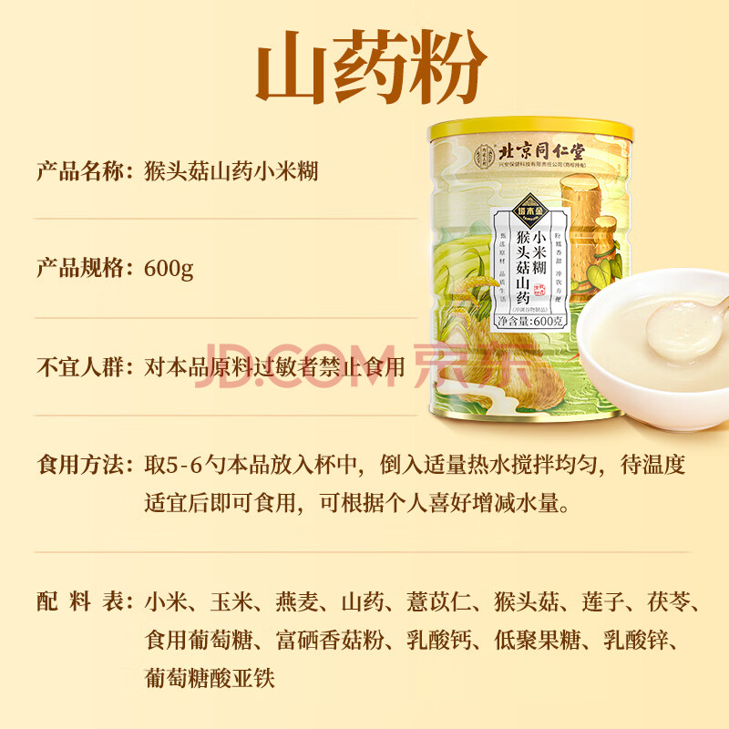 商品相册:同仁堂猴头菇山药粉600g小米糊玉米羹中老年送礼人养胃营养早餐第