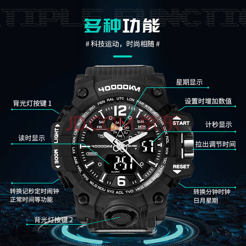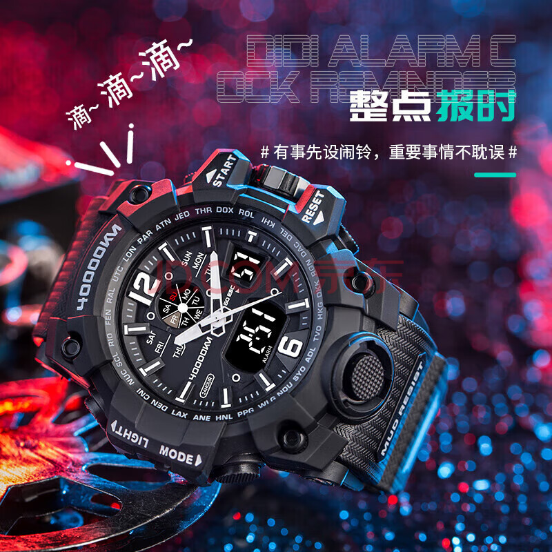商品相册:四万公里儿童电子手表学生手表男小学生青少年初高中运动手表防水夜光闹钟第
