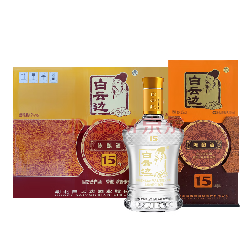 商品相册:白云边十五年陈酿 浓酱兼香型白酒 42度 500ml*6瓶 整箱装【热卖白酒】第