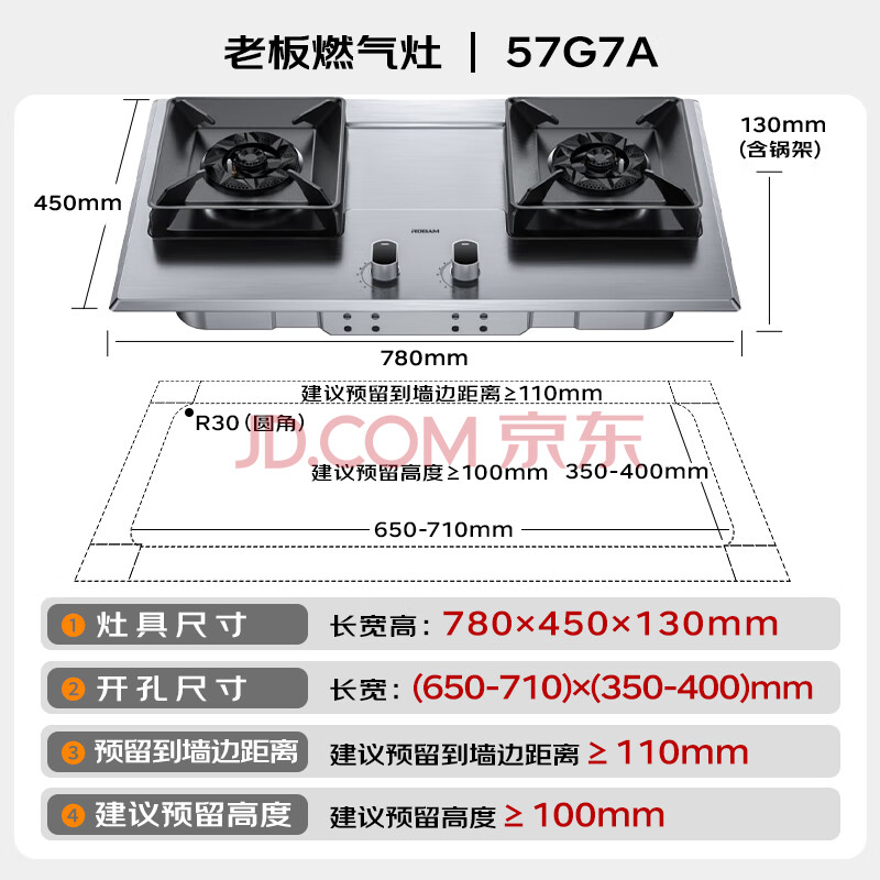 商品相册:老板(Robam)【推荐L5防爆灶】防爆不锈钢天然气猛火燃气炉灶煤气双灶台家用灶具JZT-57G7A上门安装第1张/共8