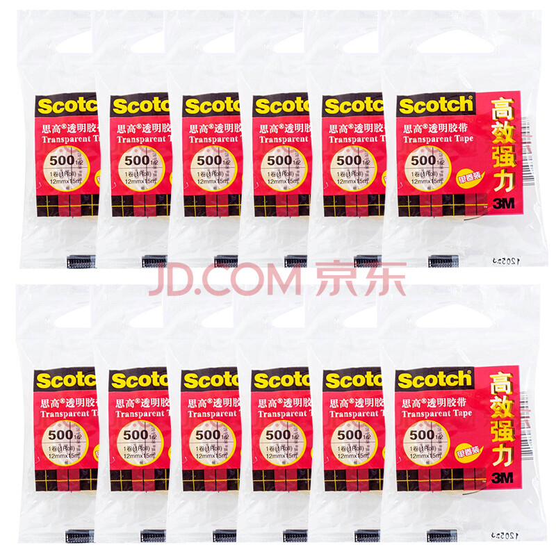 商品相册:3M 思高 胶带 高效强力透明胶带 500-HS 12mm×15m 12卷装第