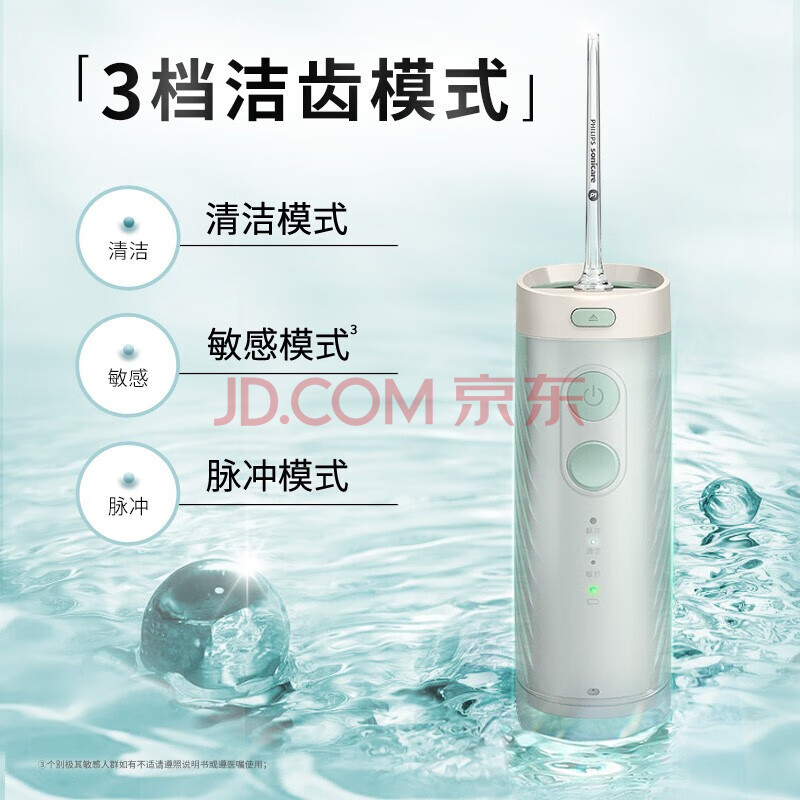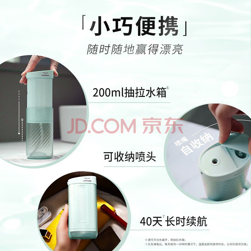 商品相册:PHILIPS冲牙器PHILIPS飞利浦冲牙器电动洗牙器伸缩旅行便携式洁牙器自带三款专业喷嘴不焦绿HX3331/02第