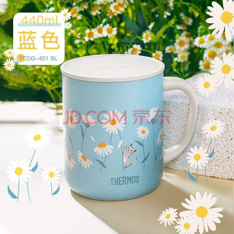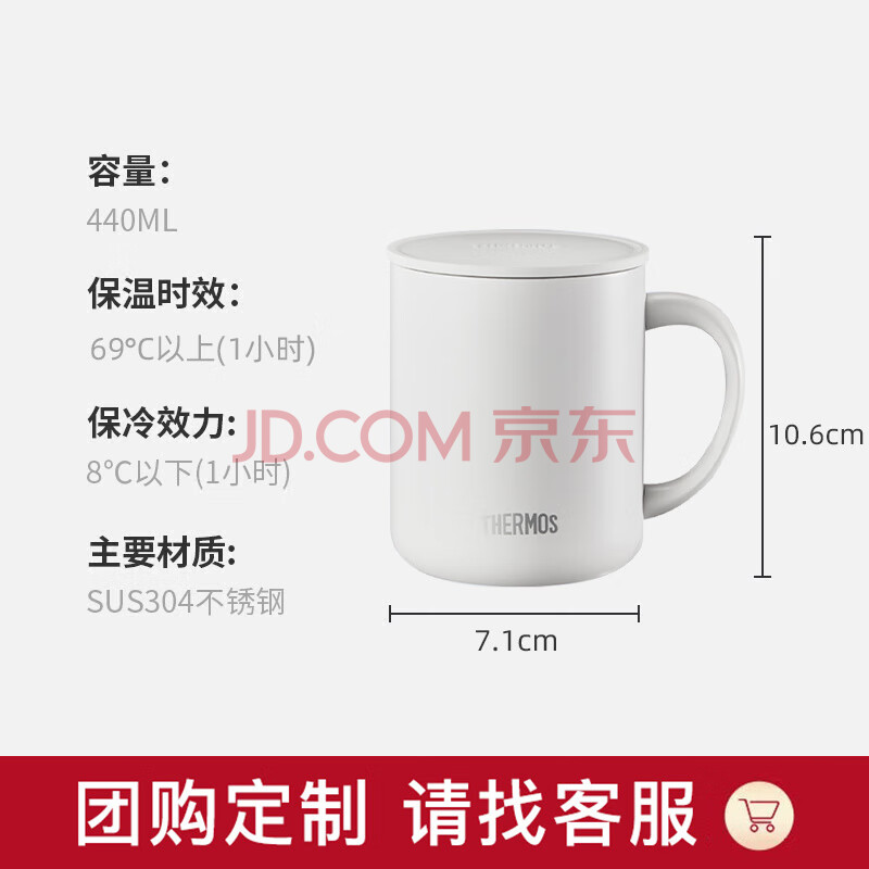 商品相册:THERMOS膳魔师保温杯马克咖啡杯440ml带盖茶杯男女情侣水杯子TCDG-451 WH第
