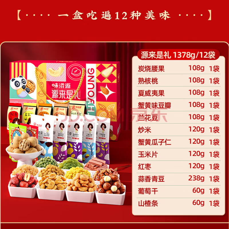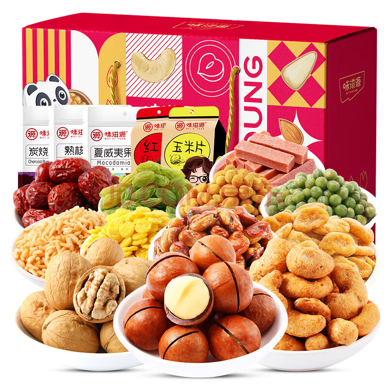 商品相册:味滋源 坚果大礼包每日零食坚果 炭烧腰果夏威夷果葡萄干熟核桃 源来是礼线1378g第