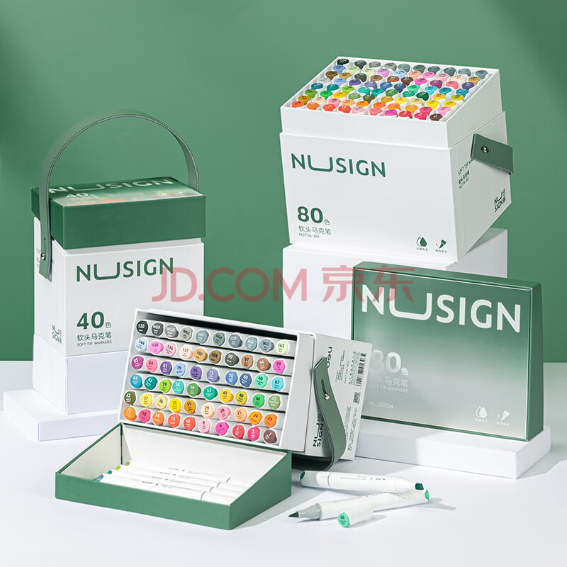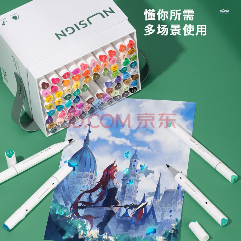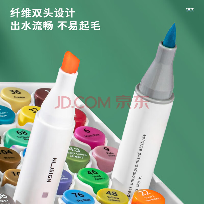 商品相册:得力(deli)60色速干双头软头马克笔高端纽赛学生美术元旦树生绘画生日新年手提盒装水彩笔美育第