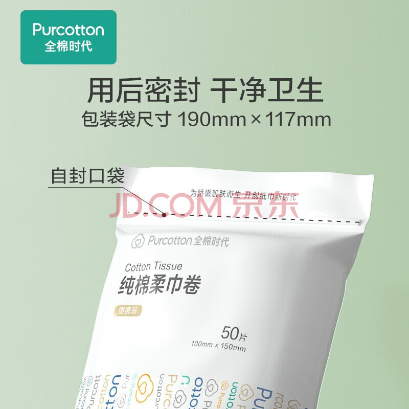 商品相册:全棉时代抽纸 纯棉柔巾卷 一次性抽取式洗脸巾 干湿两用 擦脸洁面巾*12包第