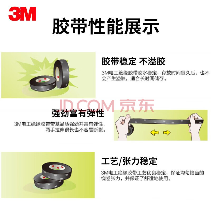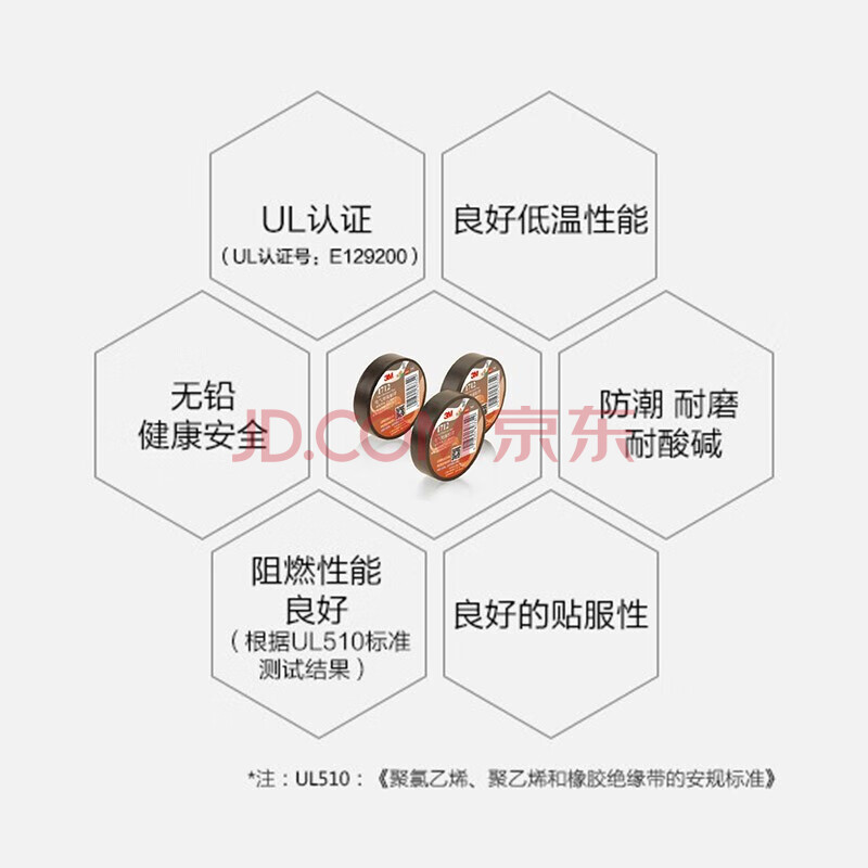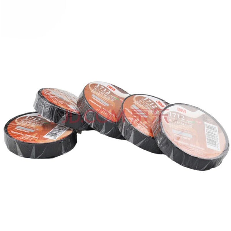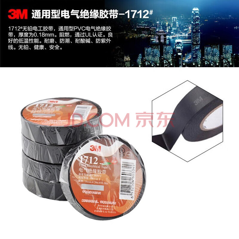 商品相册:3M 1712# 办公家装 通用型PVC电工电气绝缘胶带 无铅阻燃耐高温 黑色 18mm*20m*0.18mm 5卷装第1张/共8