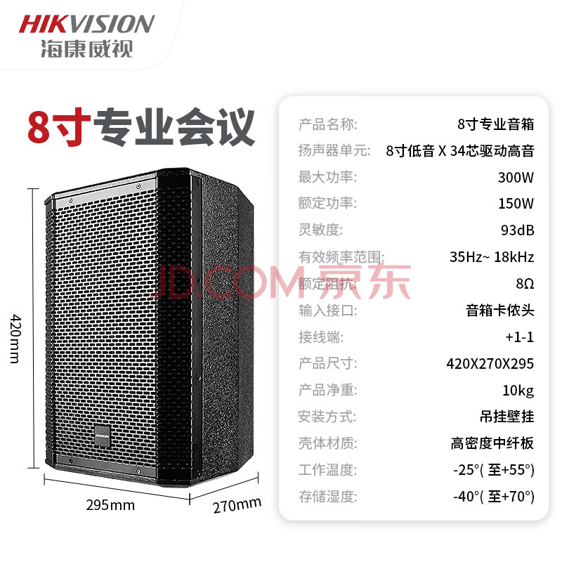 商品相册:海康威视(HIKVISION)8寸专业音箱会议室多功能演播厅婚庆舞台演出卡包KTV 酒吧大功率二分频高低音工程HIFI发烧级音响第