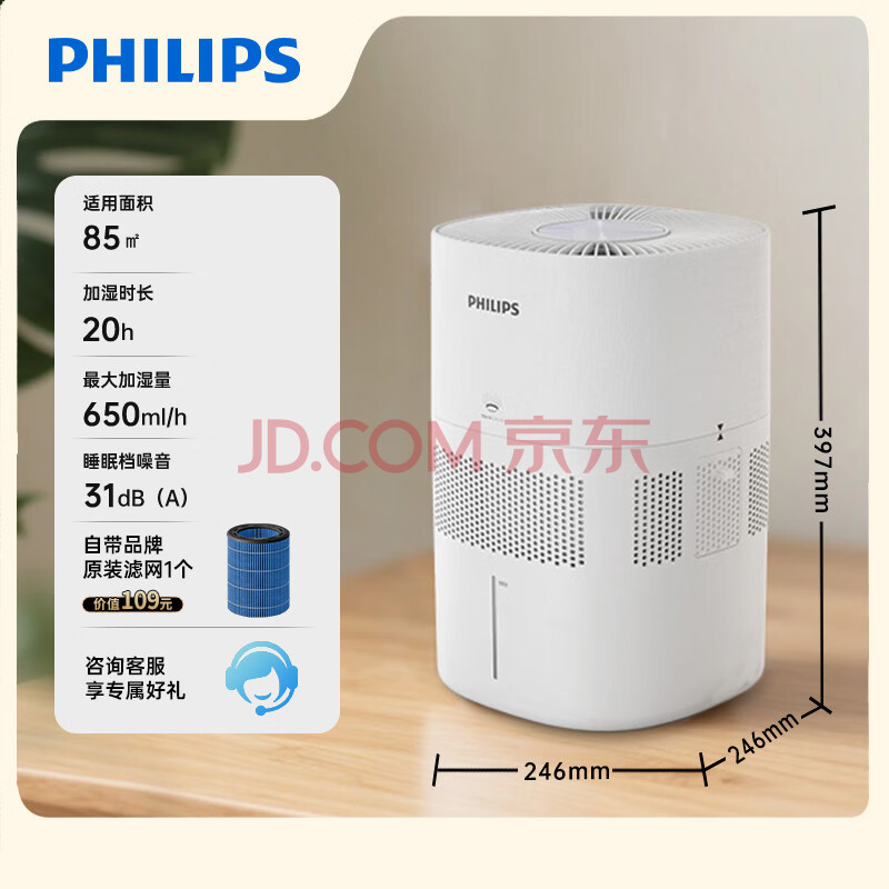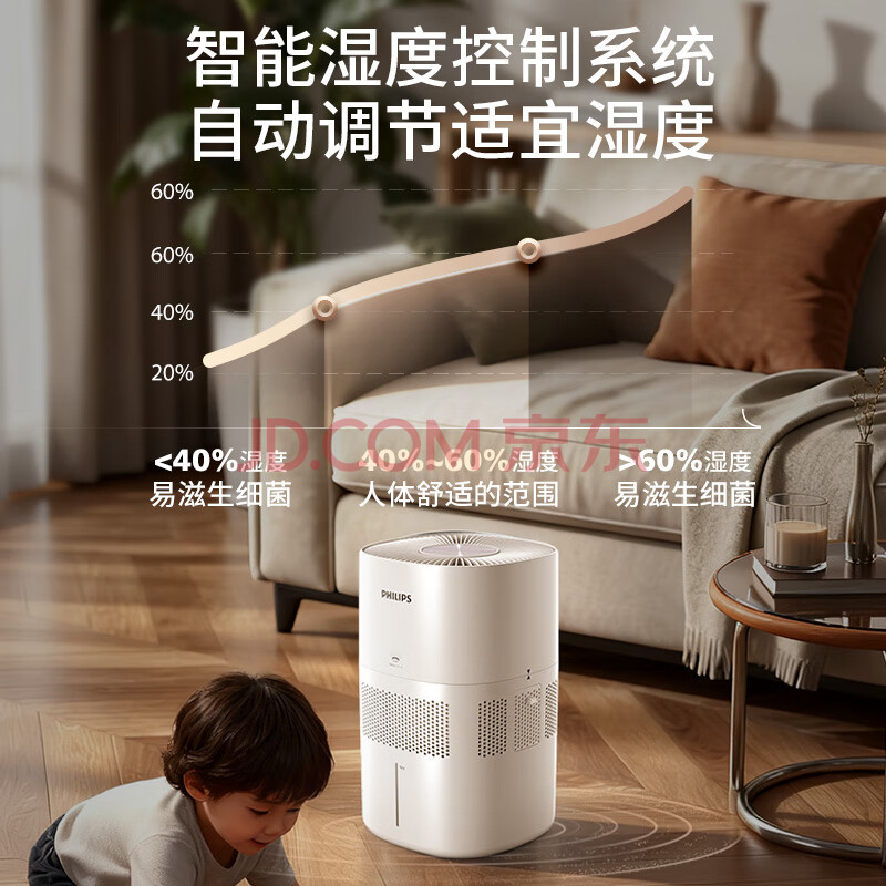 商品相册:飞利浦(PHILIPS)加湿器家用卧室母婴专用静音除菌无雾空调加湿机鼻炎孕妇婴幼儿小型桌面大容量HU5969礼品第
