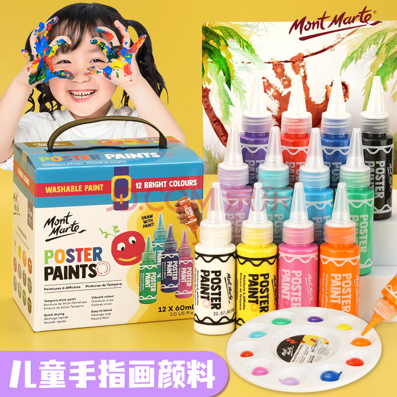 商品相册:蒙玛特(MontMarte)手指画颜料套装可水洗24色儿童画画颜料60ml水粉颜料涂鸦手彩绘画MPST6006C美育工具第