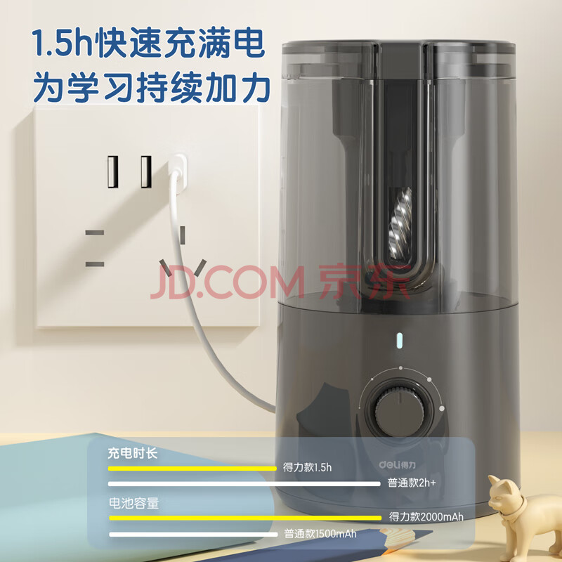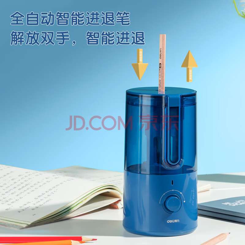 商品相册:得力(deli)全自动削笔机卷笔刀可充电锂电池5档粗细可调8mm铅笔转笔刀儿童学生电动文具生日开学礼物 蓝色第