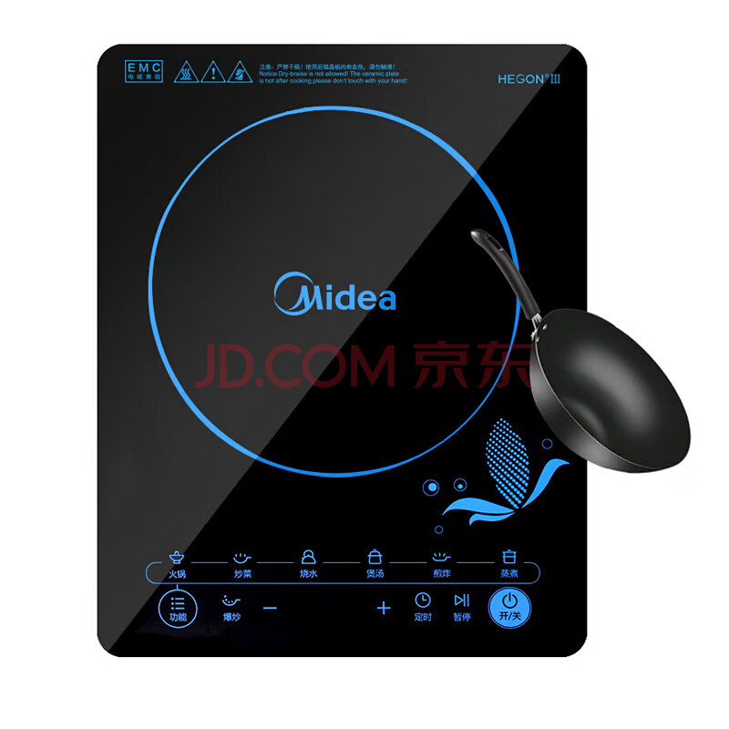商品相册:美的(Midea)电磁炉 家用多功能大功率智能触屏电磁灶 带炒锅 C21-SN2105第