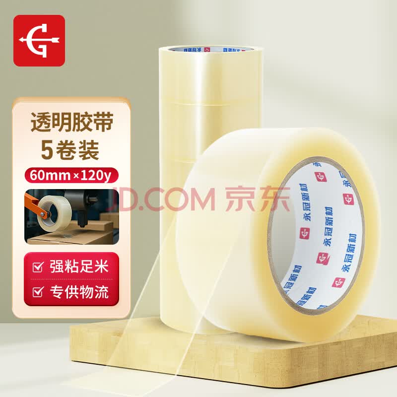 商品相册:永冠透明胶带封箱封口快递打包宽胶带货物工厂仓库搬家60mm*120y(110m)*58um*5卷/桶第